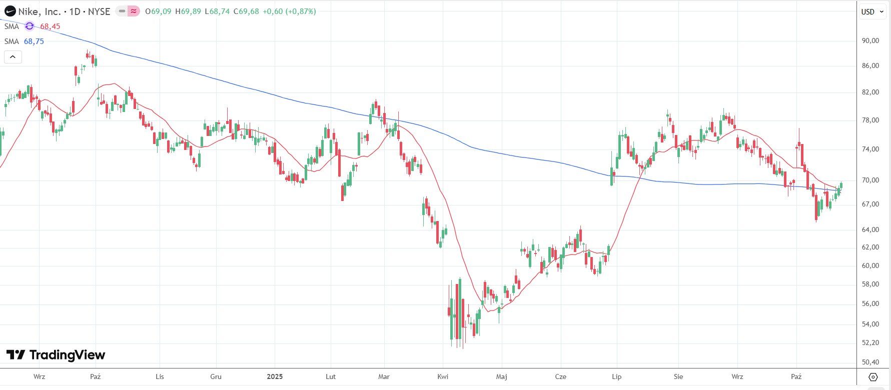 W czwartek kupiłem akcje Nike do portfela globalnego, prowadzonego na rachunku Saxo. Jest to moja ulubiona marka odzieży sportowej, szczególnie butów do koszykówki, którą kiedyś namiętnie i dość intensywnie uprawiałem amatorsko. Wydarzeniem ostatnich dni jest powrót Michaela Jordana w roli komentatora NBA dla stacji NBC. Jego marka Jumpman jest wciąż pod skrzydłami Nike i generuje ok. 7 mld USD przychodów, co stanowi 13-15% przychodów całego koncernu (szacuje się że słynny koszykarz otrzymuje ok. 5% tantiemów). Kurs przebił średnią 200-sesyjną SMA na wymagającym ostatnio rynku. Ticker spółki na giełdzie nowojorskiej to NKE.