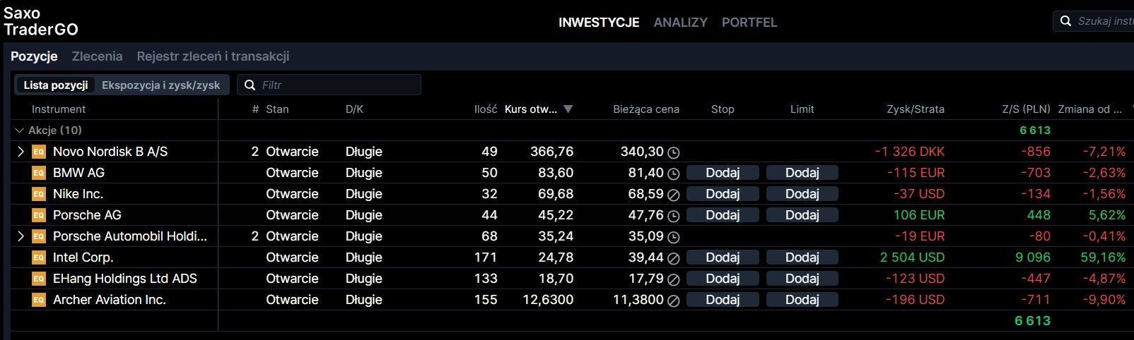 Zrzut ekranu z mojego rachunku w Saxo Banku.